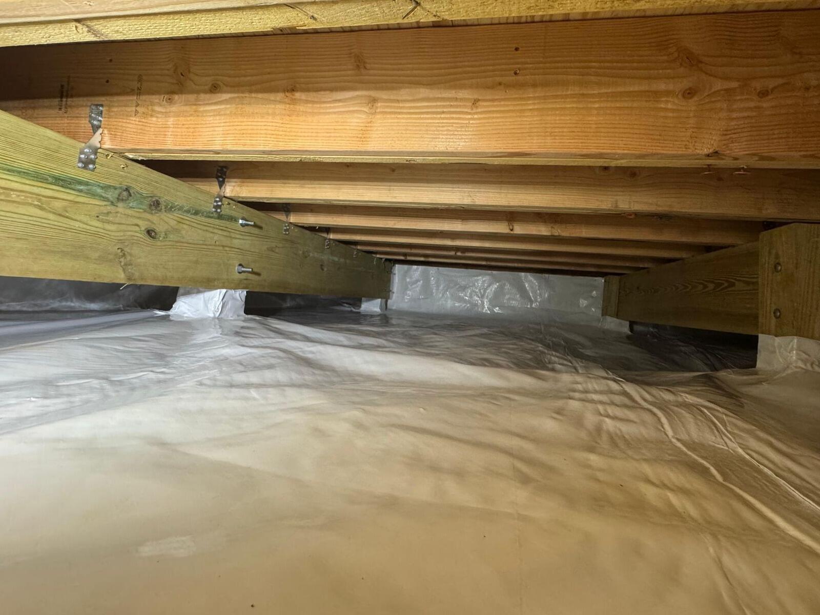 This homeowner from Downingtown, PA had a persistent moisture issue, so they chose a comprehensive solution. CleanSpace and drainage matting created a clean, dry barrier over the soil Now the crawl space is spotless and protected, giving the homeowner confidence that their home’s structure and air quality are safer than ever.