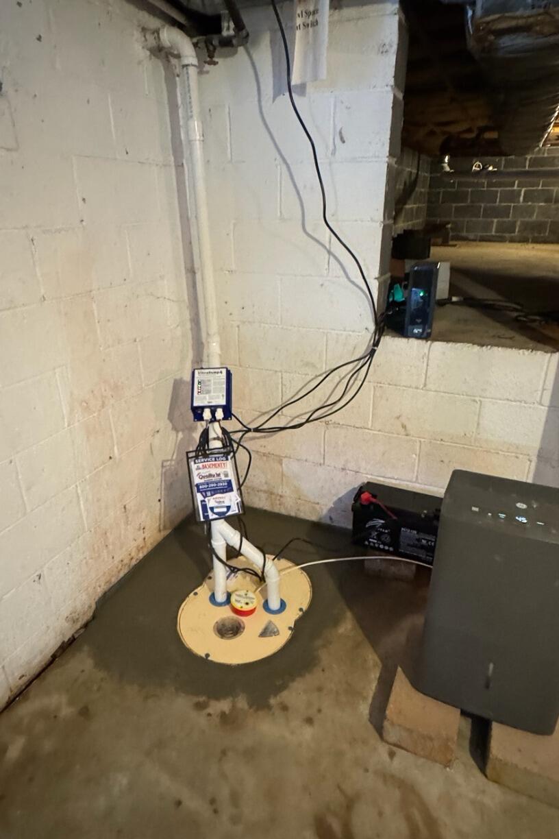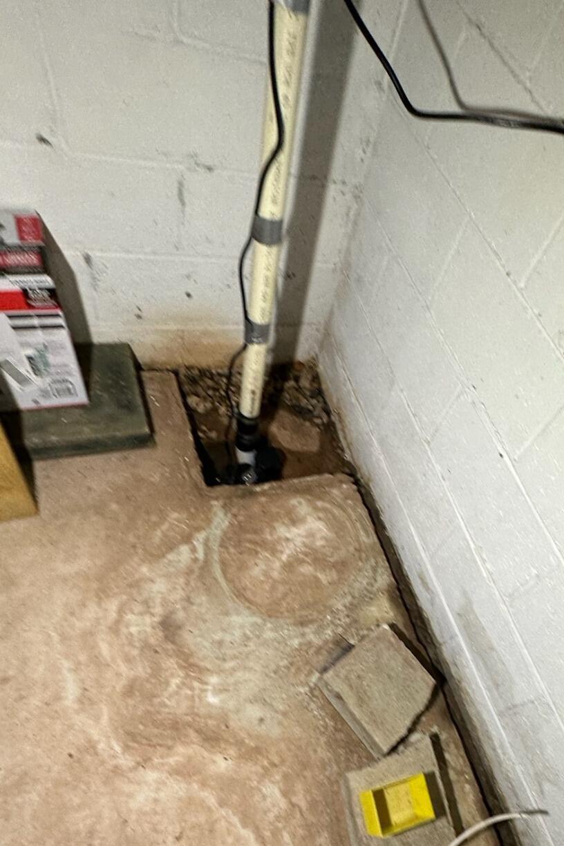 A homeowner in Princeton, NJ, was facing frequent water intrusion from their basement floor and needed an upgraded sump pump system to maintain a dry, safe space. Their existing setup just couldn’t cut it, as seen in the first photo where water damage was becoming a concern. To solve this issue, we installed our TripleSafe Sump Pump System, shown in the after photo.