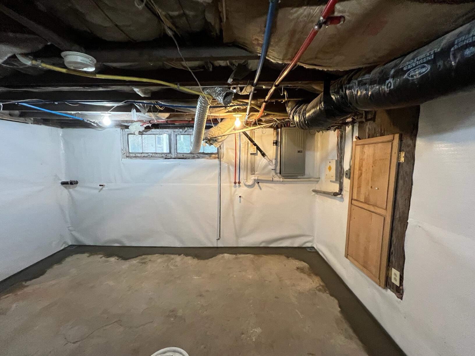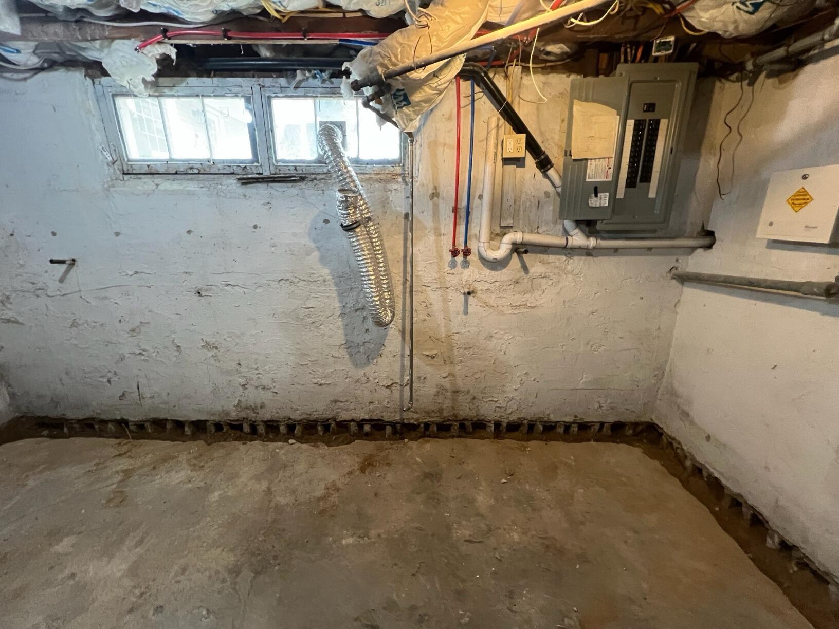 A Somers Point, NJ basement developed a small leak through a wall opening during heavy rain. Our crew installed WaterGuard for drainage, a SuperSump pump for removal, and CleanSpace along the walls to seal out moisture. The space is now dry, clean, and protected long-term.