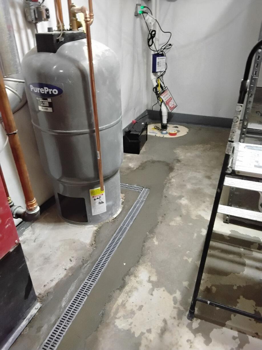 We waterproofed a leaky basement in Campbell Hall, NY by using our CleanSpace Wall System, TripleSafe Sump Pump System, and two of our interior drainage systems. The TrenchDrain System went around the areas where there are appliances that cannot be moved. The DryTrak System went along the perimeter of the basement walls since this house has a monolithic foundation. Any incoming water will be drained into the interior drainages systems and pumped out thanks to the TripleSafe Sump Pump System! Together all these products work together to ensure that this basement is a dry and healthy environment.