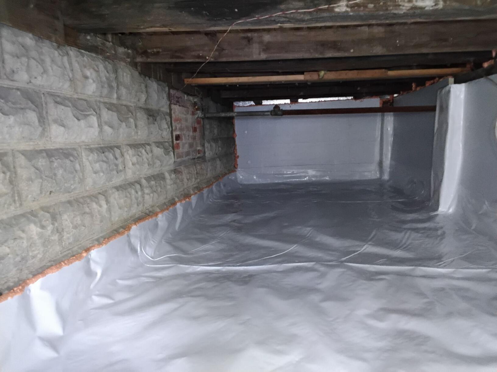 We made sure this crawl space in Cornwall, NY was sealed off from the earth and insulated using our trustworthy products. First, our drainage matting was placed over the dirt floor to further enhance the longevity and durability of the liner going on top. Next, we installed our Foamax insulated wall panels to make the crawl space warmer and to prevent cold air from passing through into the rest of the home. They even feature a foil vapor barrier on the back. Finally, to prevent water vapor from making its way inside, we used our super durable CleanSpace Encapsulation System to form a barrier over the area.